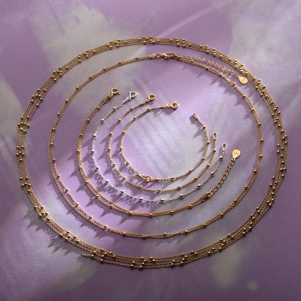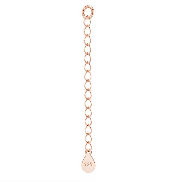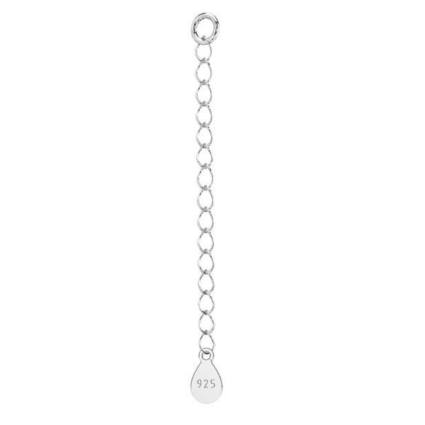 El diámetro interno de los eslabones de la cadena es de aprox. 2,5 mm, lo que facilita su fijación a la mayoría de cierres y bases de joyería. El extensor de plata para pulseras y collares se coloca en el extremo de la joya, frente al cierre, proporcionando un ajuste cómodo de la longitud y un valor estético adicional.