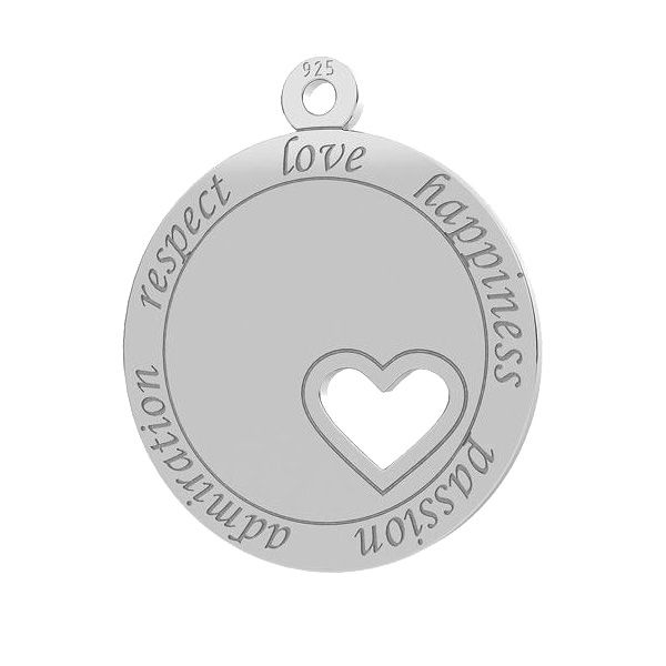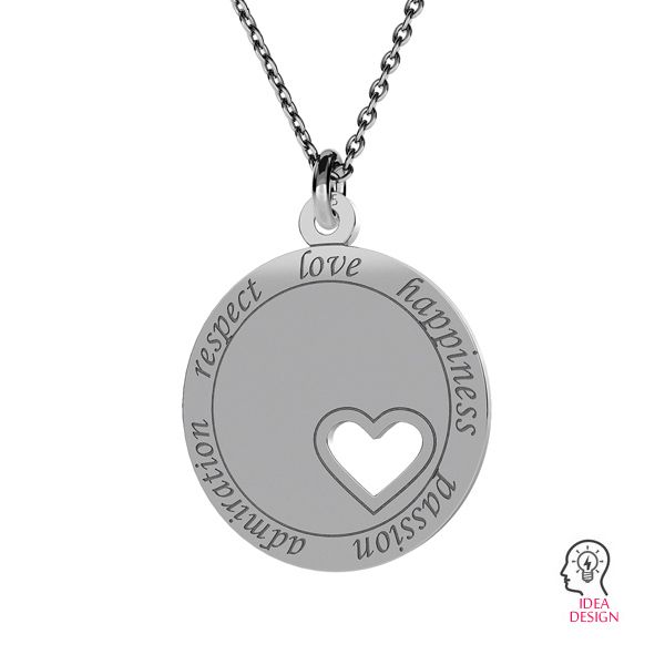 Colgante - placa redonda con corazón y grabado, plata AG 925