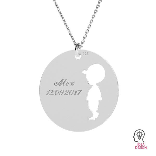 Colgante - placa redonda - niño, plata AG 925