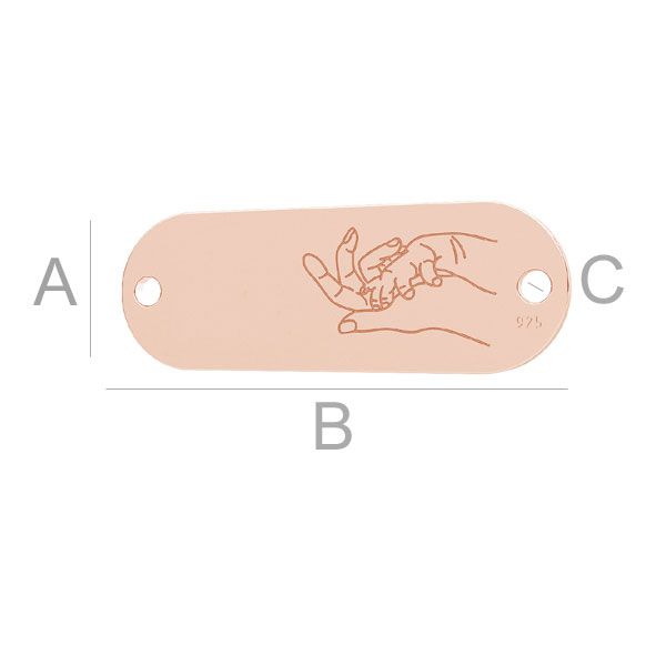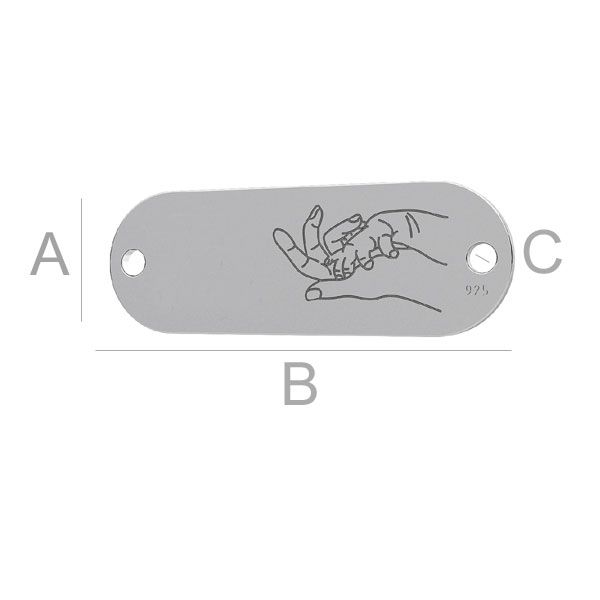 Colgante conector - placa ovalada - manos de madre e hijo, plata AG 925