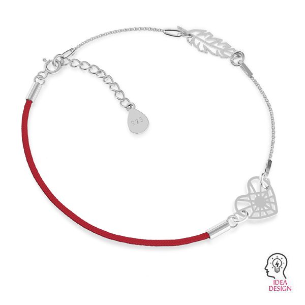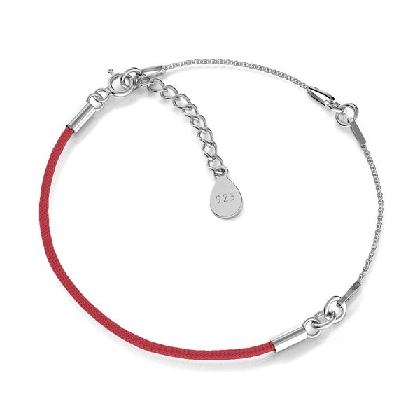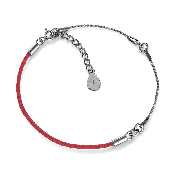Pulsera de hilo de dos piezas A 030 con extensión - rojo, plata AG 925