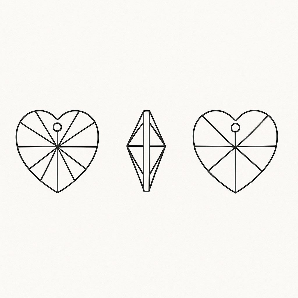 Colgante de cristal en forma de corazon con dimensiones de 18,0 x 17,5 mm.