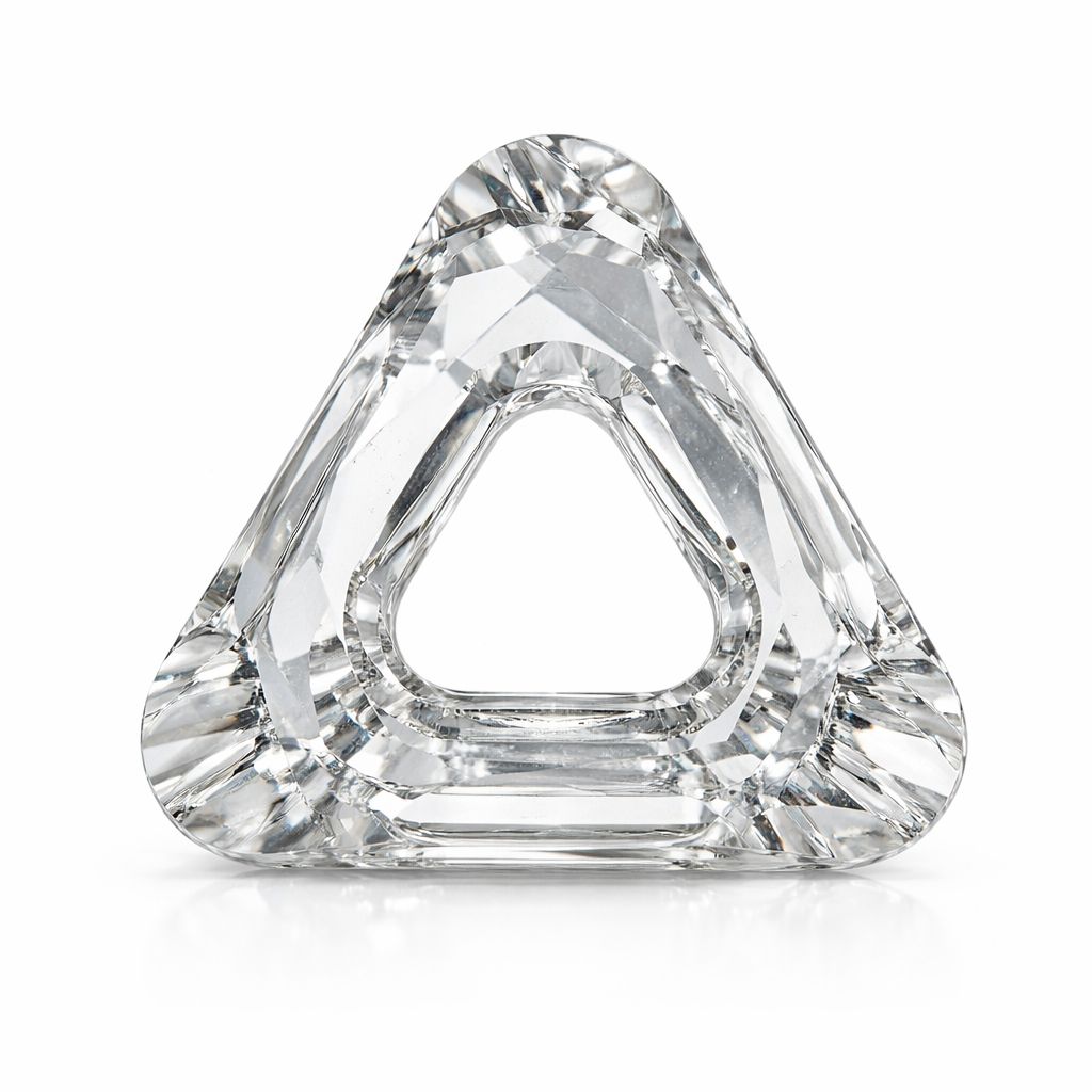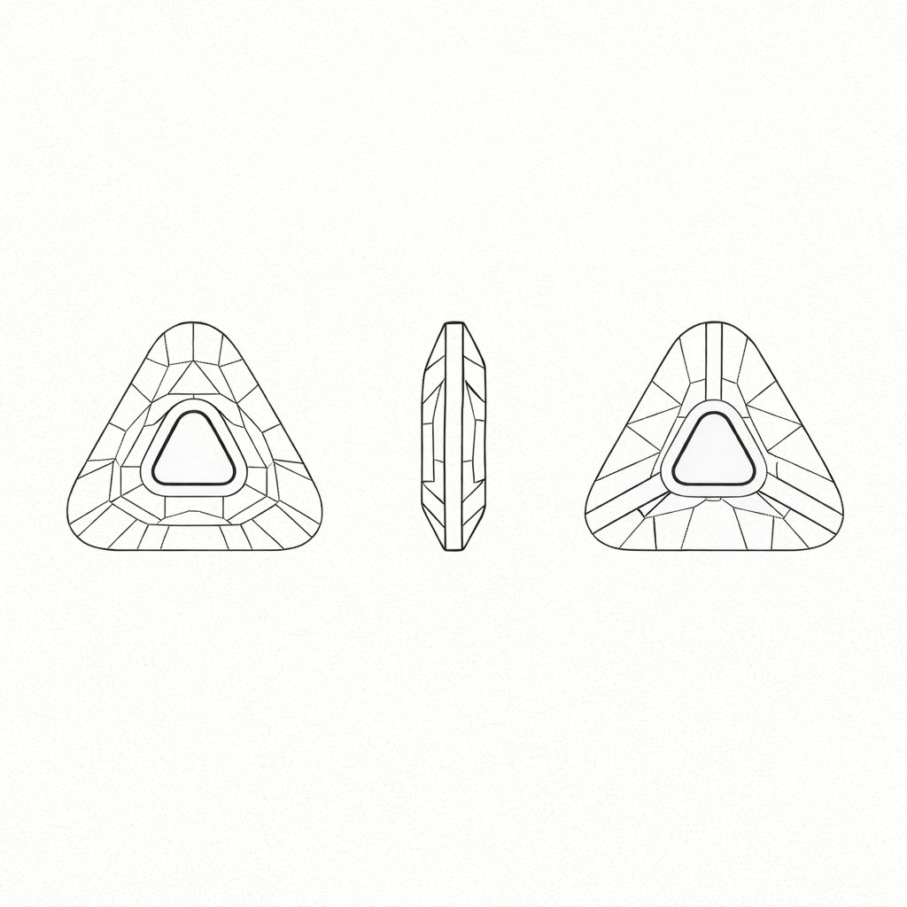 Piedra Swarovski triangular de 30,0 mm en color Crystal. El modelo 4737 cuenta con un orificio central, lo que permite su uso como elemento decorativo o de joyería. La forma geométrica y el color transparente la hacen adecuada para joyería, accesorios y decoraciones.