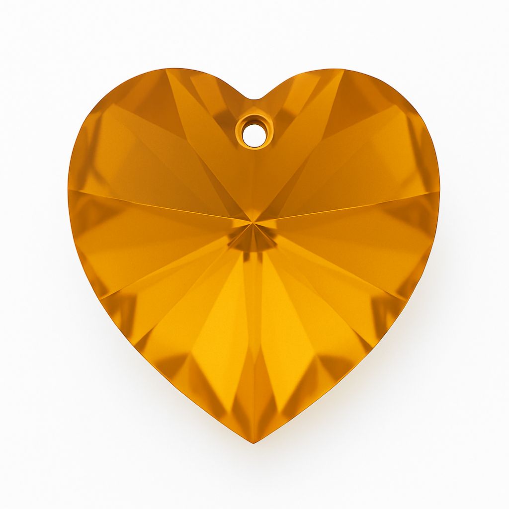 Piedra decorativa en forma de corazón de 18,0x17,5 mm en color Topaz. El corte facetado realza el tono cálido y dorado y crea un elegante efecto luminoso. La forma de corazón es ideal para joyería, colgantes, pendientes y proyectos decorativos con significado simbólico.