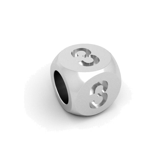 Colgante de cuentas - cubo número 3, plata AG 925