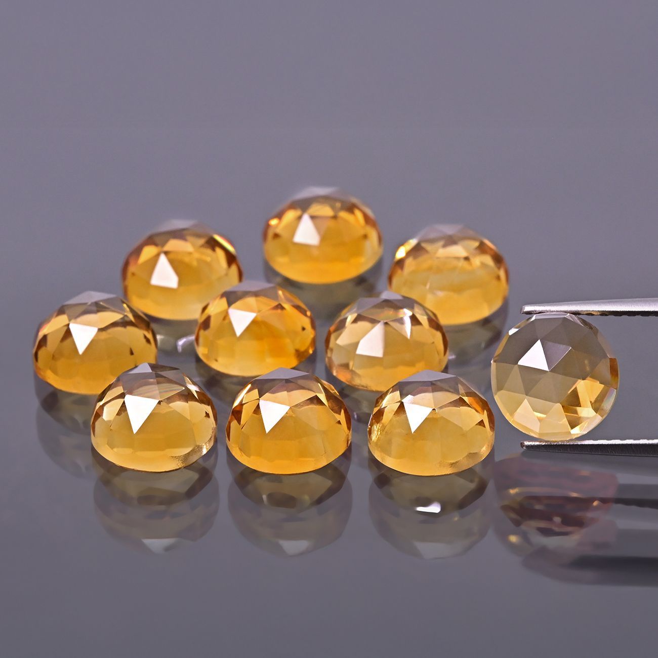 Piedra redonda, corte rosa - Citrino A 6 mm. Citrino de alta calidad con color intenso y cálido, corte ROSE CUT con base plana, perfecto para diseños de joyería elegante.