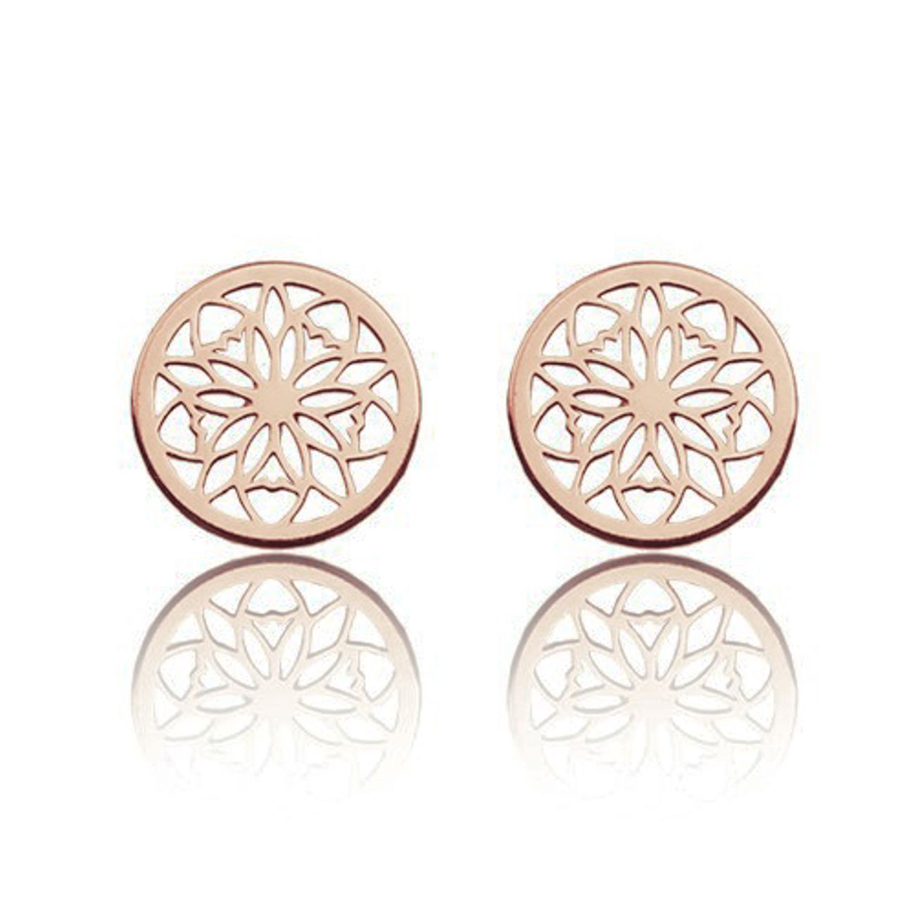 Pendientes tipo botón con motivo calado de roseta, que combinan delicadeza y elegancia. El diseño simétrico aporta un estilo ligero y atemporal. Fabricados en plata de ley 925 con acabado preciso. Ideales para uso diario o ocasiones especiales.