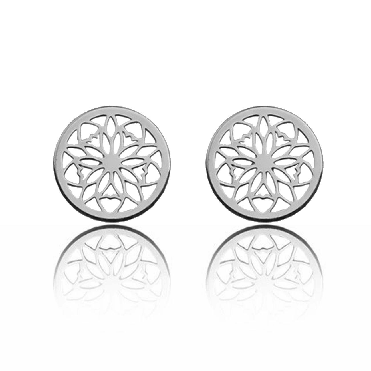 Pendiente tipo stud calado - roseta, plata AG 925