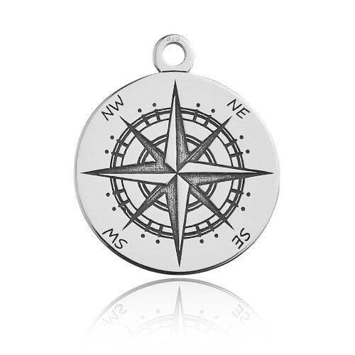 Colgante - brújula, rosa de los vientos, plata AG 925