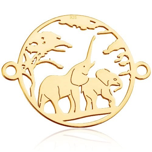 Conector calado - elefantes africanos, plata AG 925