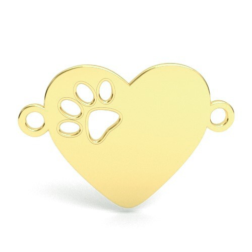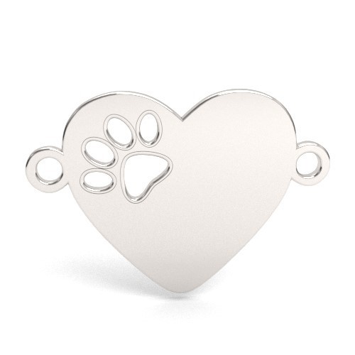 Colgante conector - corazón con huella de perro, plata AG 925