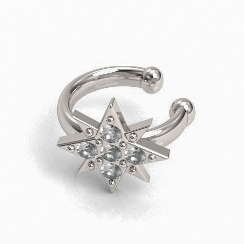 Pendiente de clip - ear cuff con estrella, plata AG 925