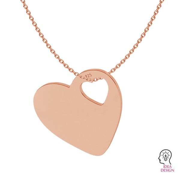 Colgante - corazones con un corazón recortado - placa de grabado, plata AG 925