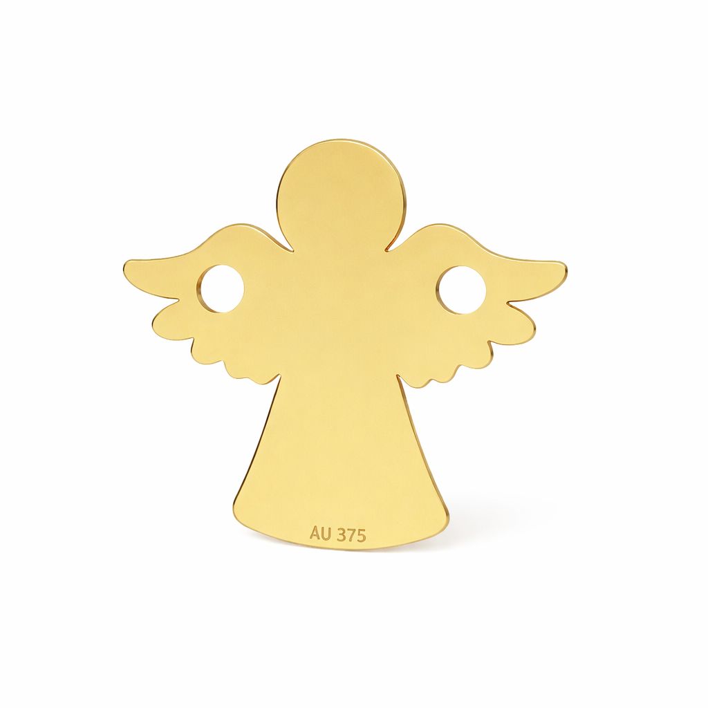 El conector con motivo de ángel en oro AU 375 es un semifabricado simbólico de forma delicada y bien definida. El tema de la protección lo hace adecuado para pulseras y collares para niños y adultos.