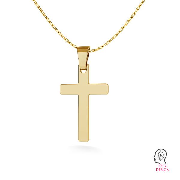 El colgante con forma de cruz simple en oro AU 375 es un semifabricado minimalista de estética atemporal. La forma discreta y el simbolismo universal lo hacen adecuado para joyería elegante y espiritual.
