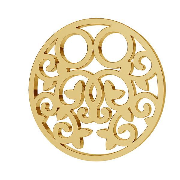 El conector calado estilo celebridad con forma de placa redonda en oro AU 375 es un semifabricado minimalista de forma ligera y versátil. El diseño clásico es ideal para joyería personalizada y moderna.