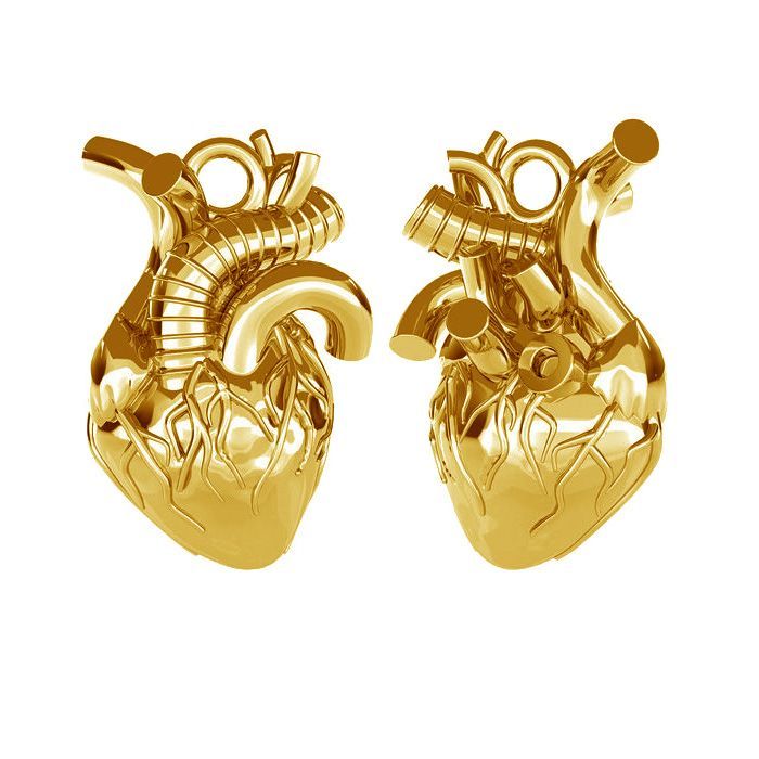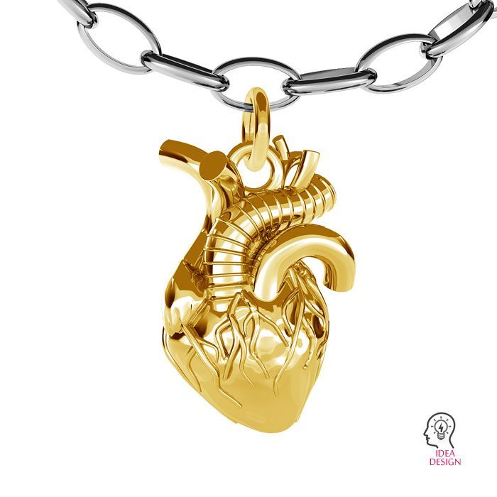 El corazón anatómico es un motivo joyero expresivo de carácter universal. El colgante de latón simboliza la vida y las emociones. Apto para joyería femenina y masculina, ideal para collares, pulseras, pendientes colgantes y charms.