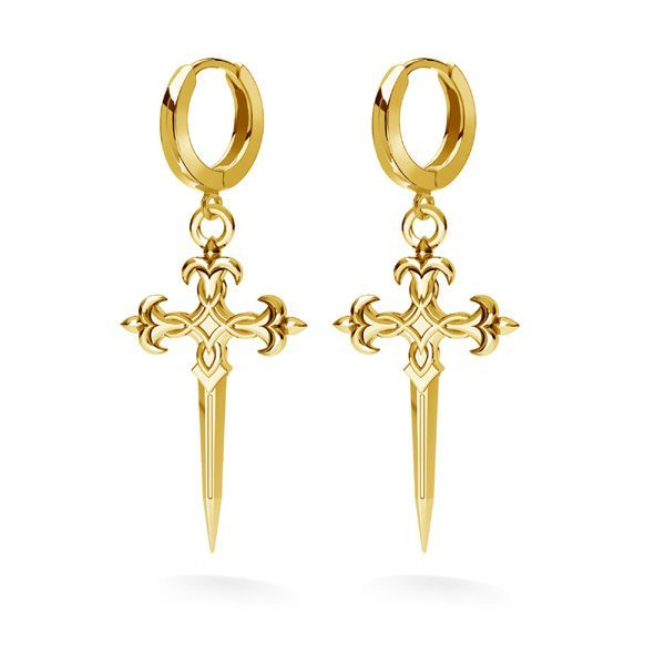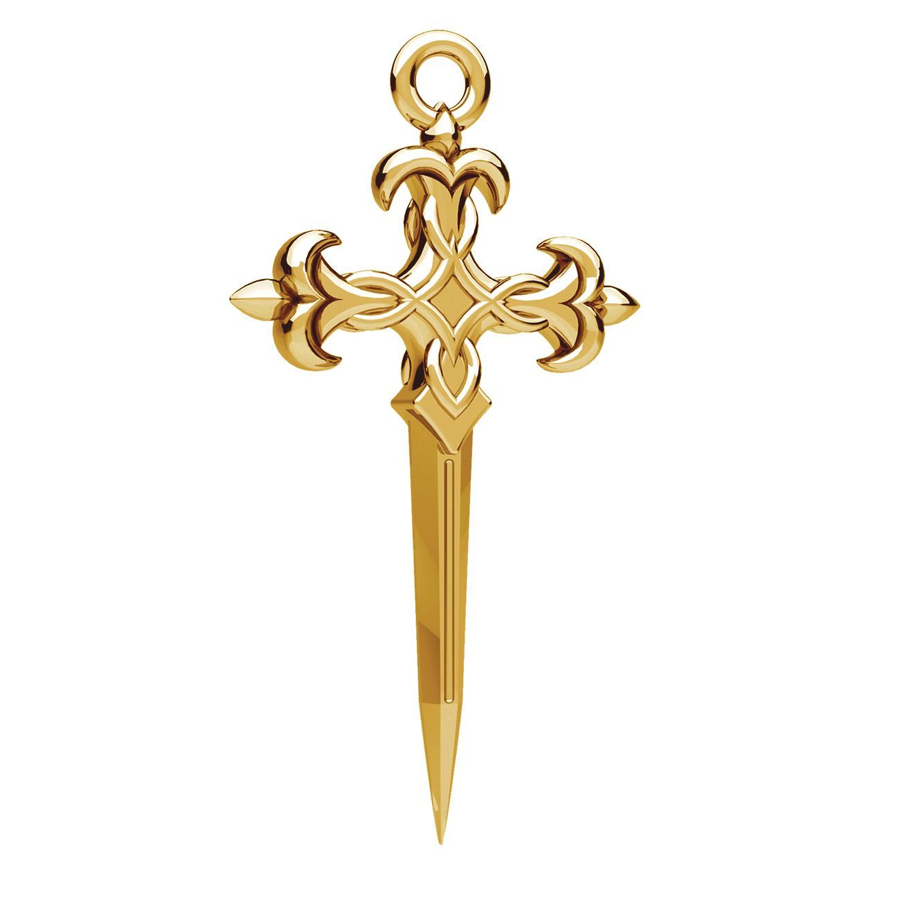 El colgante cruz daga es un motivo decorativo intenso de carácter simbólico. La fundición en latón combina la forma de cruz, espada y daga, enriquecida con un detalle de lirio. La estructura profunda resalta el diseño. Adecuado para collares y pendientes.