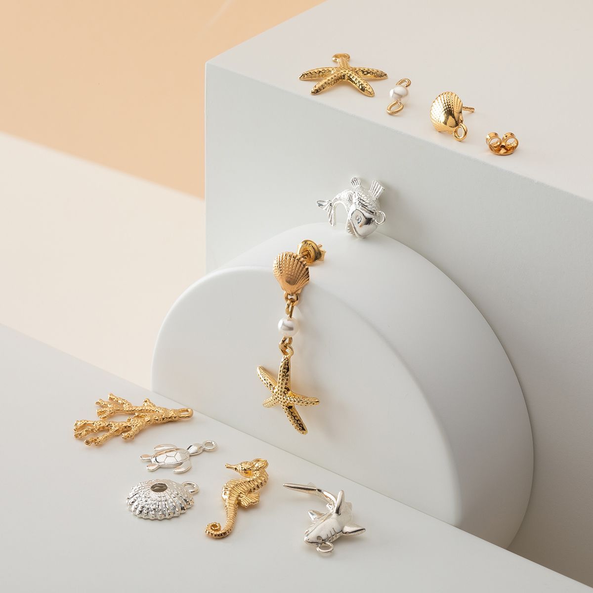 El colgante estrella de mar es un motivo decorativo inspirado en el mar. La fundición 3D en latón reproduce la textura natural de la estrella de mar, aportando un carácter veraniego. Ideal para joyería boho y marina, collares, pulseras y pendientes.