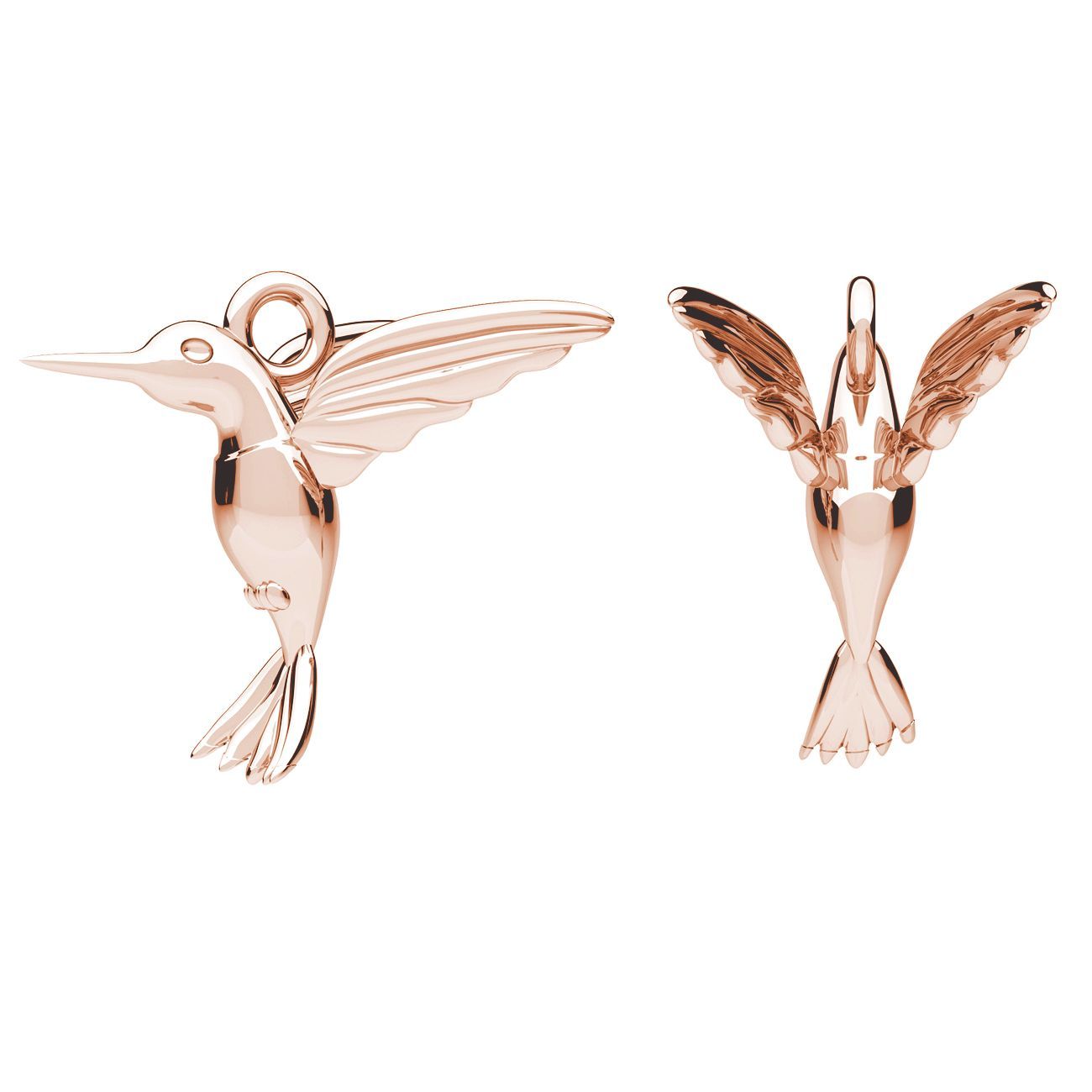 El colgante colibrí es un motivo decorativo inspirado en la naturaleza. La fundición 3D en latón reproduce la silueta estilizada, las alas abiertas y el pico característico. Su forma delicada es ideal para collares, pulseras y pendientes.
