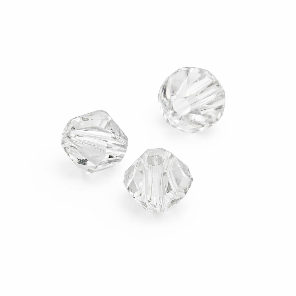 Cuenta facetada en forma de bicono, tamaño 4,0 mm, en color Crystal. El modelo 5328 es una cuenta clásica de doble cono con orificio central para ensartar en hilo o alambre. El color Crystal es incoloro y totalmente transparente, sin efecto AB. Adecuada para pulseras, collares, pendientes y otros diseños de joyería.