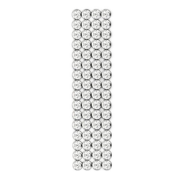 Banda decorativa mesh flexible compuesta por cuatro filas paralelas de piedras en color Crystal. Las piedras están fijadas de fábrica sobre un soporte, creando una estructura uniforme y brillante. Ideal para decoración, aplicaciones textiles, accesorios escénicos, arreglos florales y proyectos DIY.